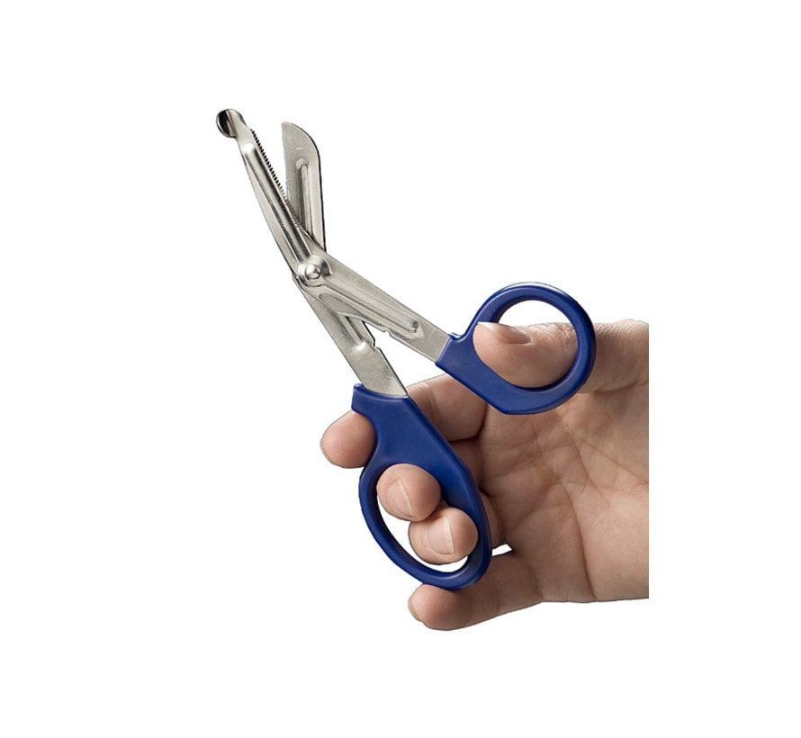 Verbandschaar kunststof 3 pack De verbandschaar is nu ook verkrijgbaar per 3. De verbandschaar kunststof is ideaal om verband mee te knippen. Niet alleen dat: deze schaar is ook geschikt voor het doorknippen van kleding. Het is dus een goede tool om in elke EHBO koffer te hebben. Sommige koffers zijn standaard voorzien van een verbandschaar. Zo niet, dan kun je deze eenvoudig los bestellen. Waarom de verbandschaar? Verband knippen kun je in principe met elke schaar doen. Veel scharen knippen verband echter niet zo goed. Of ze zorgen voor rafels. Wanneer je verband moet knippen, kan het zijn dat je haast hebt. Misschien is er zelfs sprake van spoed. Met een verbandschaar weet je zeker dat je het verband snel op de gewenste lengte kunt knippen. Ook voor het doorknippen van kleding is de verbandschaar optimaal geschikt. Je knipt er snel mee door allerlei soorten kleding heen. Dit doe je bijvoorbeeld wanneer je een AED moet gebruiken, of wanneer een slachtoffer een brandwond heeft. Met een lengte van veertien centimeter is de schaar aangenaam compact. Je bergt hem eenvoudig op in een EHBO koffer, verbandtrommel of etui. Waarom heeft deze schaar een bocht? Dankzij speciale scharen en extra grote kunststof handvatten knipt de schaar comfortabel. Je hoeft je geen zorgen te maken over de juiste plaatsing: de schaar knipt goed vanuit elke hoek. Maar over hoeken gesproken: de opvallende bocht die de schaar maakt, valt meteen op. Deze heeft natuurlijk een functie. Je knipt altijd met de schaar in het verlengde van je hand, dus vaak met de punt gericht naar waar je moet knippen. Dat is bij het losknippen van kleding of verband gevaarlijk. Op die manier zou bij een normale schaar de punt van de schaar de huid kunnen raken. Bij de verbandschaar staan de scharen onder een hoek ten opzichte van je hand. Zo is de punt bij het knippen nooit richting de huid gericht. Dat is een stuk veiliger. Let op: niet steriel De verbandschaar kunststof is niet steriel. Wees dus voorzichtig bij gebruik bij (open) wonden.