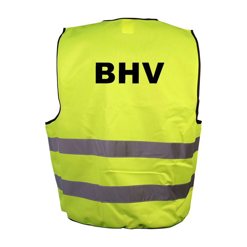 Het hesje geel BHV opdruk voor/achter zorgt voor veiligheid op de werkvloer, in openbare ruimtes en tijdens evenementen. Door de kleur geel en de opdruk BHV valt het veiligheidshesje extra goed op. Het hesje heeft horizontale reflecterende strepen die oplichten in het donker. Het hesje is gemaakt van 100% polyester en heeft een klittenband sluiting. Door het dragen van deze veiligheidshesjes zorg je ervoor dat je bij een calamiteit goed opvalt. De maat is XL en daardoor geschikt voor iedere volwassene.
