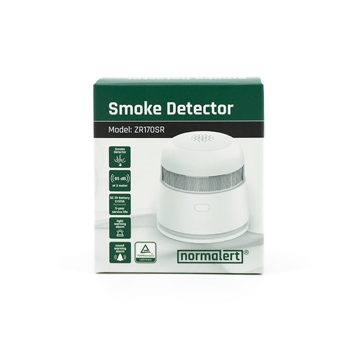 ZR170SR Mini Rookmelder Normalert De ZR170SR Mini Rookmelder biedt betrouwbare brandbeveiliging in een compact en stijlvol ontwerp, perfect voor elke ruimte thuis of op kantoor. Met een hoge rookgevoeligheid (0,08 - 0,13 dB/m) detecteert deze melder rookontwikkeling snel en geeft een krachtig alarm van 85 dB, zodat je direct gewaarschuwd wordt bij gevaar. Belangrijkste kenmerken: * Onderling koppelbaar: De ZR170SR rookmelders zijn onderling te koppelen, wat betekent dat bij rookdetectie in één ruimte alle gekoppelde melders tegelijkertijd alarm slaan. Ideaal voor veiligheid op meerdere plekken in huis. * Vervangbare batterij met lange levensduur: De 3V lithiumbatterij gaat maar liefst 5 jaar mee voordat hij aan vervanging toe is, waardoor de rookmelder jarenlang betrouwbaar blijft werken. * Veilig en gecertificeerd: Voldoet aan de EN14604-norm en heeft een CE-markering voor gegarandeerde kwaliteit en veiligheid. Met zijn compacte design past de Normalert ZR170SR in elke ruimte en is hij eenvoudig te installeren. Kies voor langdurige gemoedsrust met deze slimme, koppelbare rookmelder.