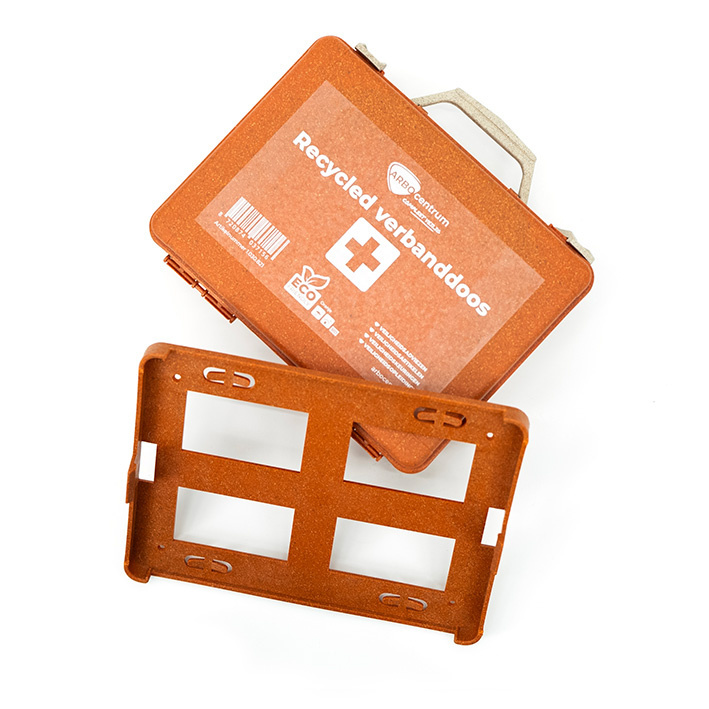Recycled Verbanddoos Oranje: Direct zichtbaar en duurzaam voor elk bedrijf De recycled verbanddoos oranje biedt bedrijven een duurzame oplossing voor eerste hulp. Deze EHBO-doos is gemaakt van gerecycled kunststof, waardoor het plasticgebruik met 94% is verminderd. Dit maakt de doos niet alleen milieuvriendelijk, maar ook een verantwoorde keuze die aansluit bij de duurzaamheidsdoelen van moderne organisaties. De inhoud is hygiënisch verpakt in plastic, wat vereist is om te voldoen aan wettelijke hygiëne- en veiligheidsnormen. Hierdoor blijven de materialen steriel en klaar voor gebruik, ongeacht de situatie. De opvallende oranje kleur maakt de doos extra zichtbaar, wat hem perfect maakt voor magazijnen, werkplaatsen en andere omgevingen waar snelle toegang tot EHBO-materiaal essentieel is. Inhoud van de verbanddoos Deze EHBO-doos bevat een volledige set hulpmiddelen voor veelvoorkomende ongevallen: * 4x Snelverbanden 6x8 cm gerold (nr. 1) * 2x Snelverbanden 8x10 cm gerold (nr. 2) * 6x Steriele gaaskompressen 5x5 cm * 6x Steriele gaaskompressen 7,5x7,5 cm * 2x Hydrofiele zwachtels 6x400 cm * 2x Hydrofiele zwachtels 4x400 cm * 1x Splinterpincet 11 cm * 1x Schaar 14,5 cm * 6x Veiligheidsspelden * 1x Elastische pleisters 6x50 cm * 2x Handschoenen vinyl * 1x Synthetische watten 10x300 cm * 1x Watten 25 gr * 1x Hechtpleister 2,5x500 cm * 1x Safe kiss beademingsdoekje * 1x Driekante doek (mitella) * 1x Reddingsdeken * 10x Desinfecterende alcoholdeppers Waarom kiezen voor de recycled verbanddoos oranje? * 94% minder plastic: Dankzij het gebruik van gerecycled kunststof draagt deze doos bij aan de verduurzaming van jouw bedrijf. * Hygiënisch verpakt: De inhoud blijft steriel en voldoet aan alle wettelijke normen. * Direct zichtbaar: De oranje kleur zorgt ervoor dat de doos snel gevonden wordt in noodgevallen. * Ideaal voor bedrijven: Geschikt voor werkomgevingen waar veiligheid prioriteit is. Een bewuste stap naar een groenere bedrijfsvoering De recycled verbanddoos oranje combineert functionaliteit en duurzaamheid. Door te kiezen voor deze doos, laat jouw organisatie zien bewust om te gaan met veiligheid en milieu. Dit maakt het een uitstekende keuze voor bedrijven die hun duurzaamheidsdoelen willen behalen, zonder concessies te doen aan kwaliteit of betrouwbaarheid. Bestel vandaag nog de recycled verbanddoos oranje en maak een stap richting een veiliger en groener bedrijfsbeleid.