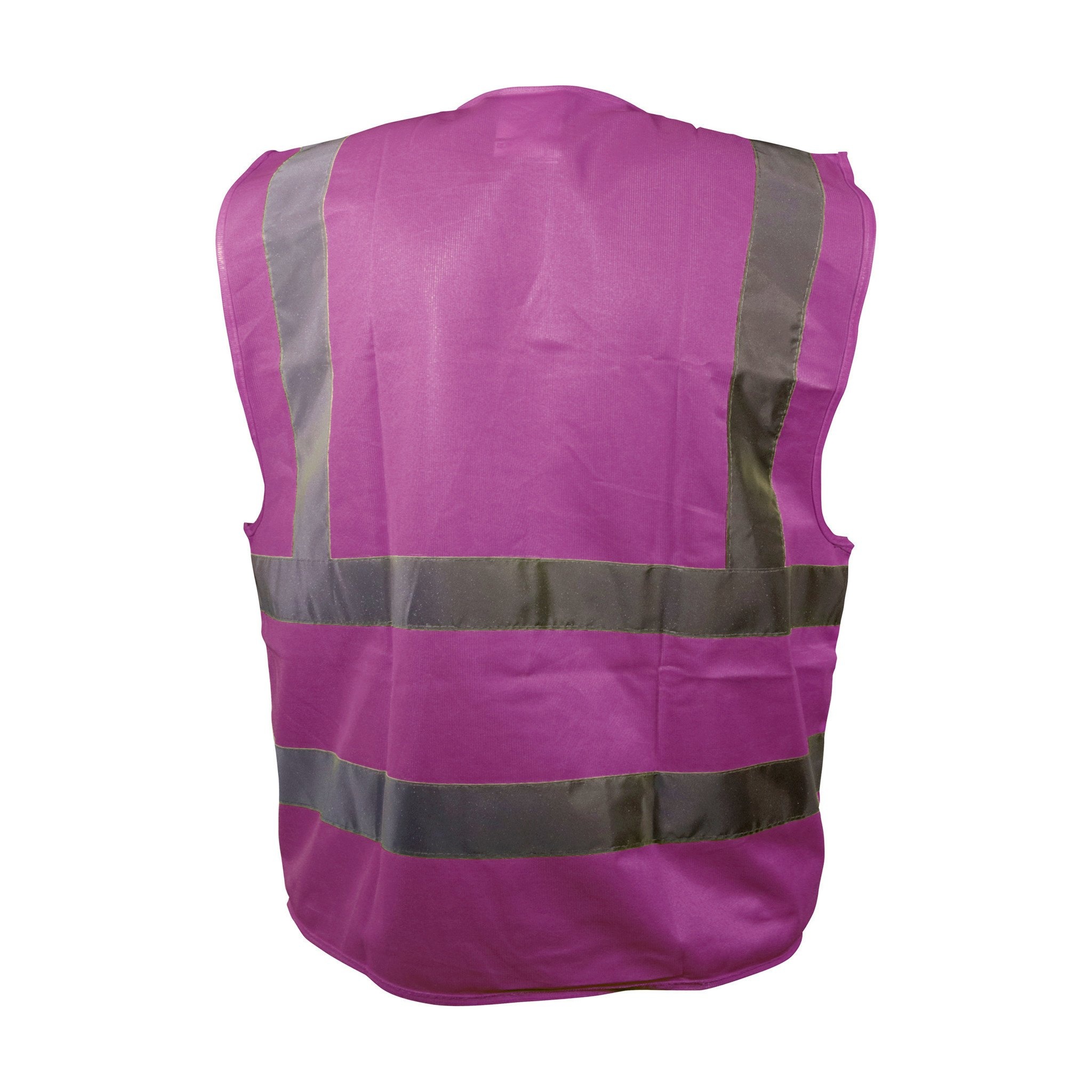 Veiligheidshesje raspberry   zorgt voor veiligheid op de werkvloer, in openbare ruimtes en tijdens evenementen. Door de kleur raspberry en de horizontale en verticale reflecterende strepen die oplichten in het donker valt het veiligheidshesje extra goed op. Veiligheidsvest Het hesje is gemaakt van 100% polyester en heeft een klittenband sluiting. Door het dragen van deze veiligheidshesjes zorg je ervoor dat je bij een calamiteit goed opvalt. De maten zijn M, XL en daardoor geschikt voor iedere volwassene. Het veiligheidshesje is conform EN ISO20471 C2.