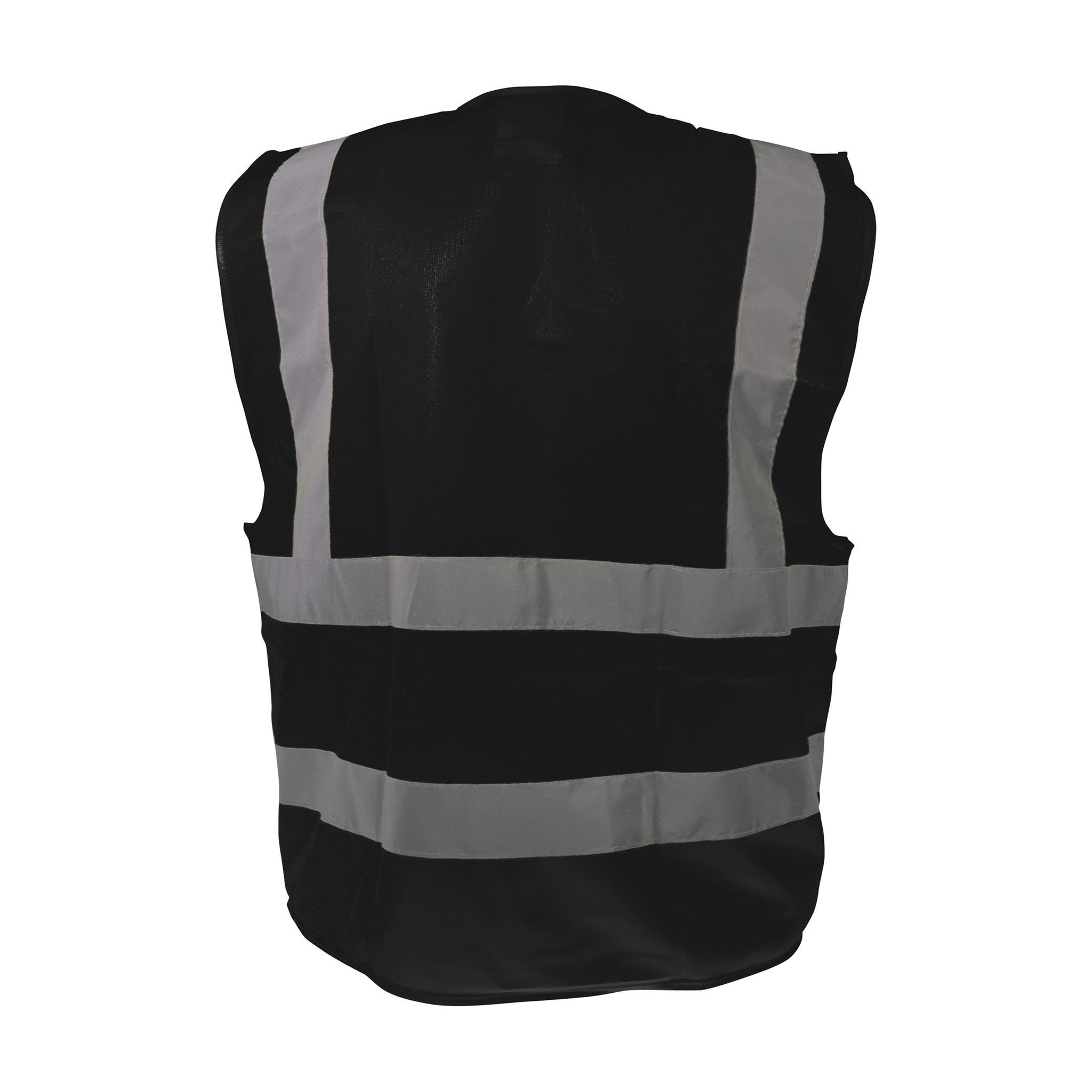 Het veiligheidshesje zorgt voor veiligheid op de werkvloer, in openbare ruimtes en tijdens evenementen. Door de kleur zwart en de horizontale en verticale reflecterende strepen die oplichten in het donker valt het veiligheidshesje extra goed op. Veiligheidsvest zwart Het hesje is gemaakt van 100% polyester en heeft een klittenband sluiting. Door het dragen van deze veiligheidshesjes zorg je ervoor dat je bij een calamiteit goed opvalt. De maten zijn M, XL en daardoor geschikt voor iedere volwassene. Het veiligheidshesje is conform EN ISO20471 C2.