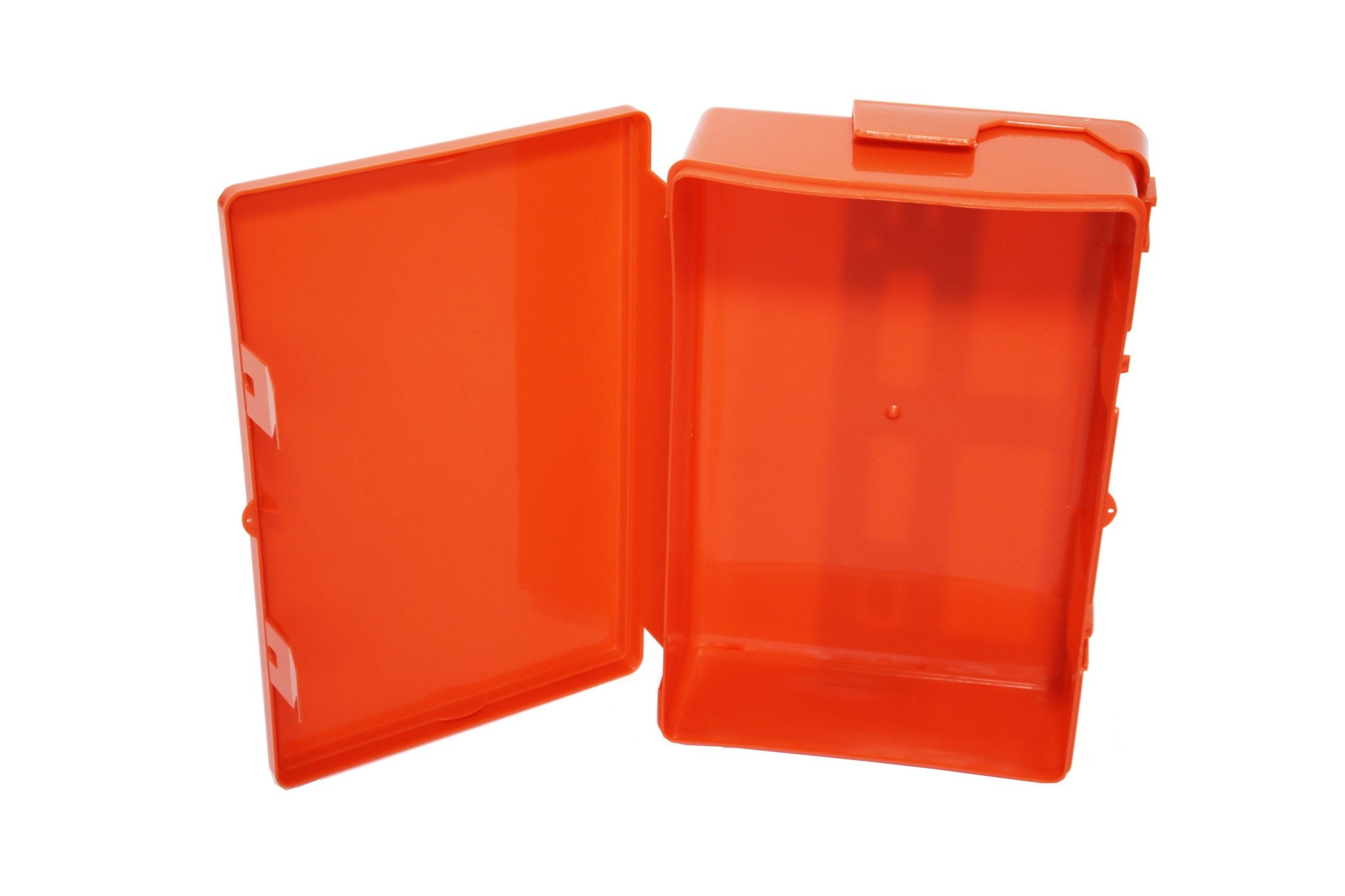 De verbanddoos B leeg is een oranje ABS koffer, zonder vakindeling. De verbanddoos wordt geleverd met wandbeugel. * Breedte: 26 cm * Hoogte: 17 cm * Diepte: 8 cm